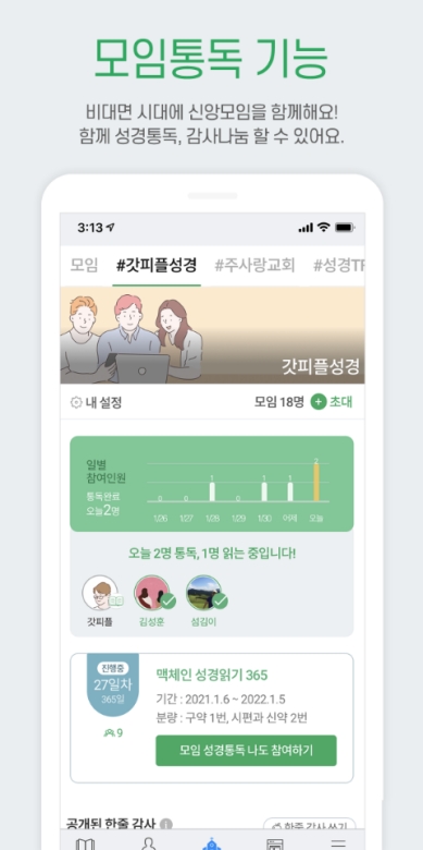 비대면으로 소통하는 게 익숙해진 요즘 같은 시대에 함께 읽는 모임 기능은 외로움을 달래주는 좋은 친구가 되어줍니다. 지인들과 함께 목표를 세우고 누가 얼마나 읽었는지 서로 확인하며 응원하다 보면 혼자일 때보다 훨씬 즐겁게 몰입할 수 있더라고요. 감사한 마음을 짧게 나누는 게시판도 있어서 매일 긍정적인 에너지를 주고받는 소중한 창구가 되었어요.