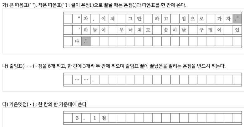 원고지 쓰는법 작성법