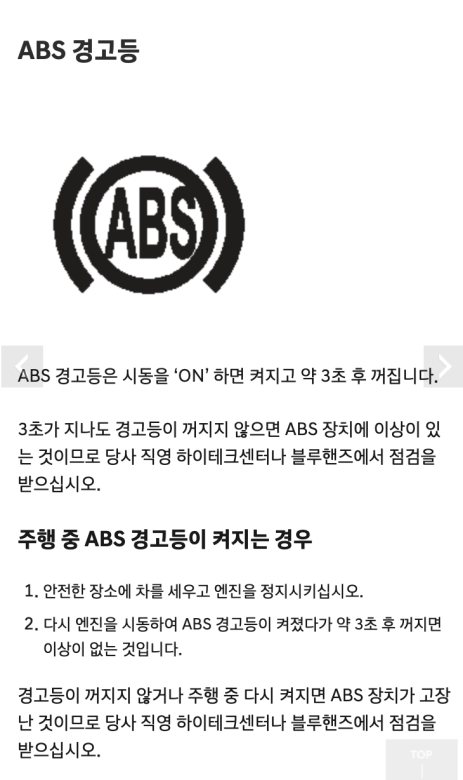 ABS 경고등도 시동을 걸면 잠시 켜졌다가 약 3초 뒤에 꺼지는 게 일반적이에요. ABS는 'Anti-lock Brake System'의 약자로, 급정거할 때 바퀴가 잠기는 걸 막아줘서 차가 미끄러지지 않고 방향을 조절할 수 있게 도와주는 아주 고마운 장치죠. 만약 3초가 지나도 경고등이 꺼지지 않거나 주행 중에 켜진다면, ABS 기능에 이상이 생겼다는 뜻이에요. 일반 브레이크는 작동하지만, 위급한 상황에서 ABS의 도움을 받을 수 없으니 점검이 필요해요.