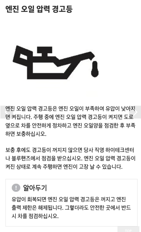 현대자동차 경고등 종류