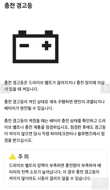 배터리 모양의 충전 경고등은 배터리 자체의 문제라기보다는, 배터리를 충전해주는 발전기(드라이브 벨트)나 관련 장치에 이상이 생겼을 때 켜져요. 이 경고등이 켜진 상태로 계속 주행하면 배터리가 방전되어서 결국 시동이 꺼지거나, 엔진이 과열될 수도 있어요. 예전에 친구 차가 주행 중에 이 경고등이 켜졌는데, 대수롭지 않게 여기다가 결국 도로 한복판에 멈춰서 고생한 적이 있어요. 이런 상황을 피하려면 경고등이 켜졌을 때 바로 점검을 받는 게 중요해요.