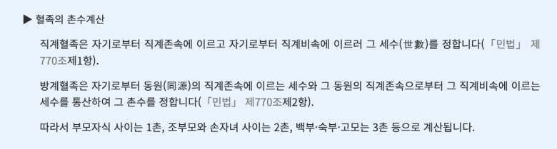 마지막으로 가족 간의 관계를 수치로 표현하는 '촌수'에 대해서도 간단히 짚고 넘어갈게요. 직계 관계에서는 촌수 계산이 아주 쉬워요. 나와 부모님 사이는 1촌, 조부모님과는 2촌이 되는 식으로 세대 수만큼 숫자가 늘어나는 거죠. 자녀는 1촌, 손자녀는 2촌이고요. 이렇게 법적으로 가족 관계의 범위를 명확하게 정해두는 것은 재산 문제뿐만 아니라 다양한 사회 제도에서 질서를 유지하기 위한 중요한 장치라고 할 수 있습니다.