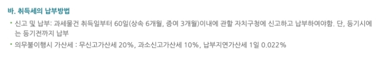 마지막으로 취득세 납부 방법과 기한을 놓쳤을 때의 불이익에 대해 알려드릴게요. 세금은 취득일로부터 60일 이내에 신고하고 납부해야 해요. 단, 상속은 상속개시일이 속하는 달의 말일부터 6개월, 증여는 3개월 이내로 기간이 조금 달라요. 만약 기한 내에 신고하지 않으면 '무신고가산세'로 원래 내야 할 세금의 20%가 추가되고, 늦게 내는 날짜만큼 하루에 0.022%씩 '납부지연가산세'가 붙어요. 가산세가 생각보다 크기 때문에 날짜를 놓치지 않도록 달력에 꼭 표시해두는 게 좋아요.