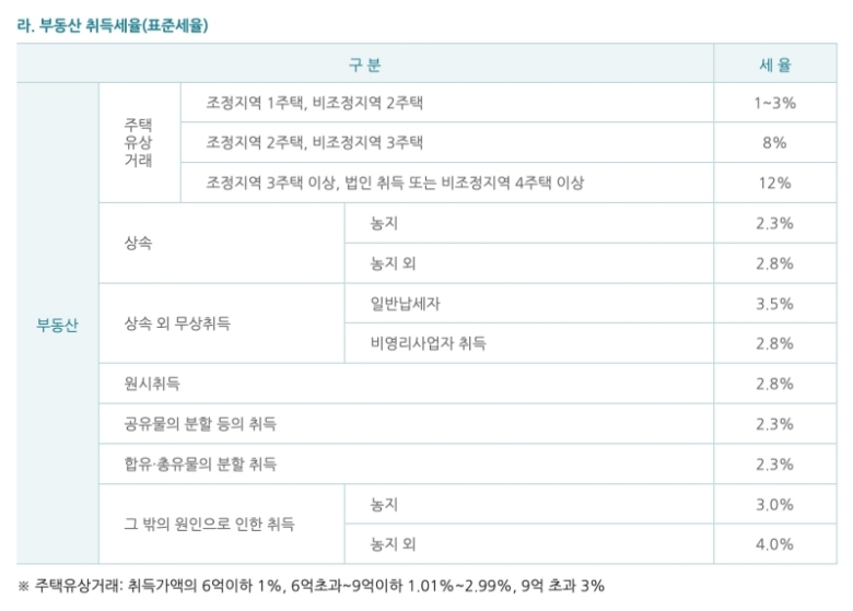 주택 취득세율 1가구
