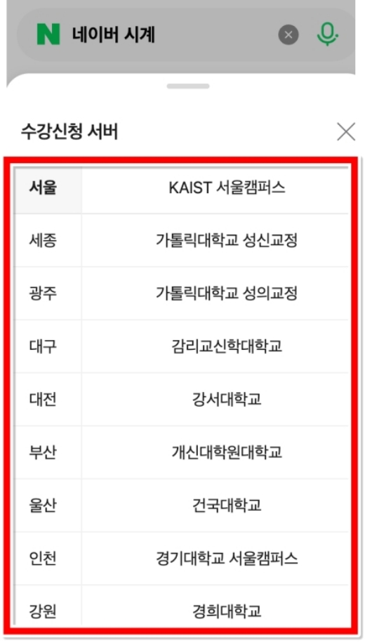 학교 이름이 너무 많아서 찾기 힘들 때는 입력창을 활용해서 검색해 보는 것도 좋은 방법이에요. 빈칸에 학교 이름을 직접 써넣으면 해당 학교의 서버 시간을 찾아서 바로 연결해 줍니다. 저도 예전에 친구 도와줄 때 이 방법을 썼는데 일일이 목록을 내리는 것보다 훨씬 빨라서 좋더라고요. 시간이 생명인 상황에서는 이렇게 한 손이라도 덜 가는 방식이 최고인 것 같습니다.