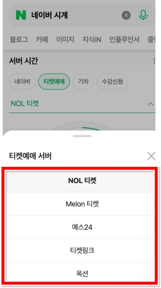 단순히 기본 숫자만 보는 게 아니라 내가 가려는 곳에 맞춰서 설정을 바꿀 수도 있어요. 상단에 나열된 메뉴 중에서 티켓 예매라고 적힌 부분을 누릅니다. 저도 예전에는 그냥 아무 시계나 띄워놓고 대기했었는데 이렇게 전용 카테고리가 따로 있는 줄은 꿈에도 몰랐거든요. 여기서 아래쪽 화살표 모양을 선택하면 우리가 흔히 아는 유명한 장소들이 목록으로 주르륵 나타납니다.