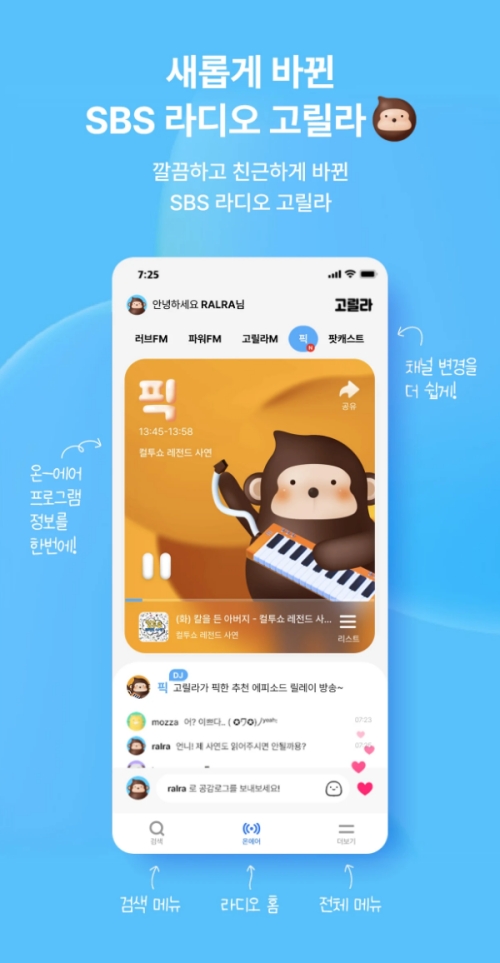 이제 'SBS 고릴라' 앱 하나만 있으면 언제 어디서든 라디오와 함께할 수 있어요. 단순히 듣는 것을 넘어 보고, 참여하는 새로운 라디오의 재미를 느껴보세요. 출퇴근길이나 혼자 있는 시간이 훨씬 더 즐겁고 풍성해질 거예요.