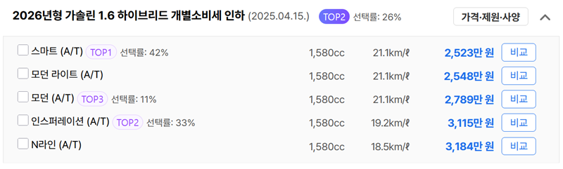 - 합리적인 가격: 세제혜택 적용 시 2,523만 원부터 시작하여 진입 장벽이 낮습니다.