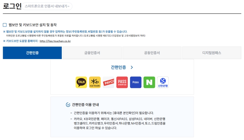 개인 정보를 확인하는 절차이다 보니 본인 확인이 필요예요. 예전처럼 복잡한 인증서 대신, 요즘은 간편인증이 있어서 정말 편리하더라고요. 저도 카카오톡이나 네이버 같은 익숙한 앱을 이용해서 아주 쉽고 빠르게 로그인을 마칠 수 있었어요.