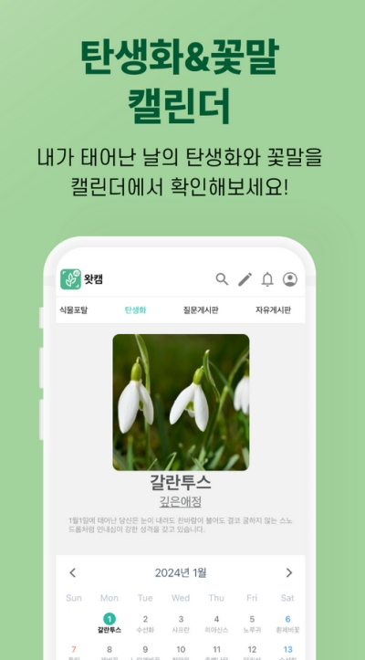 재미있는 기능도 숨어 있었는데요. 바로 내가 태어난 날의 탄생화와 그 꽃말을 확인할 수 있는 캘린더 기능이었어요. 제 생일의 탄생화가 무엇인지 찾아보고 그 의미를 읽어보니 소소한 즐거움이 느껴졌답니다. 친구나 가족의 탄생화를 찾아보는 재미도 있을 것 같아요.