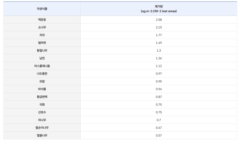 그렇다면 어떤 식물들이 이런 공기 정화 능력이 뛰어날까요? 국립원예특작과학원의 연구에 따르면 여러 자생식물(우리나라에서 자생하는 식물)이 탁월한 효과를 보였습니다. 대표적으로 맥문동이 포름알데히드 제거량이 가장 높았으며, 그 뒤를 이어 소나무, 치자, 팀와이, 황칠나무 등이 우수한 능력을 가진 것으로 나타났습니다. 이런 식물들은 우리 환경에 잘 적응해 키우기도 비교적 수월하다는 장점이 있습니다.