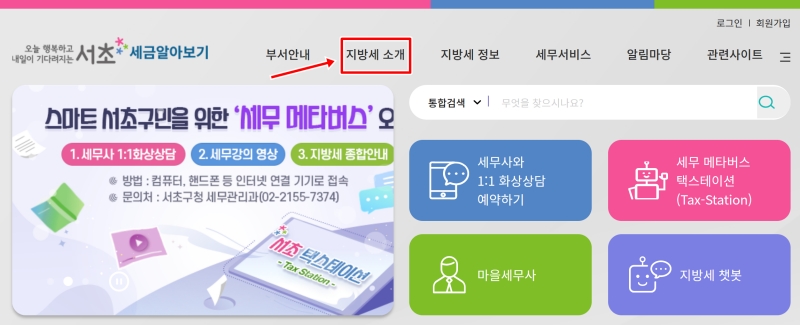 세금에 대해 궁금한 점이 생겼을 때, 가장 정확한 정보를 얻을 수 있는 곳은 역시 관련 기관의 홈페이지겠죠. 저는 서초구청의 '서초 세금알아보기'와 같은 지방세 안내 홈페이지를 자주 찾아보곤 해요. 홈페이지에 접속하면 여러 메뉴가 보이는데, 여기서 먼저 '지방세 소개' 탭을 눌러 지방세의 전체적인 그림부터 파악하는 것이 좋습니다.