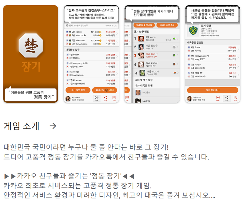 이번에는 컴퓨터가 아닌 스마트폰으로, 특히 카카오톡 친구와 함께 즐기는 방법을 알아볼게요. 스마트폰으로 즐기려면 먼저 앱을 설치해야겠죠? 구글 플레이스토어 같은 앱 마켓에 들어가서 '장기'라고 검색해 주세요. 여러 가지 앱이 나올 텐데, 그중에서 '게임 스튜디오 모노몹'처럼 카카오와 연동되는 버전을 찾는 것이 친구와 함께 즐기기 위한 핵심이에요.