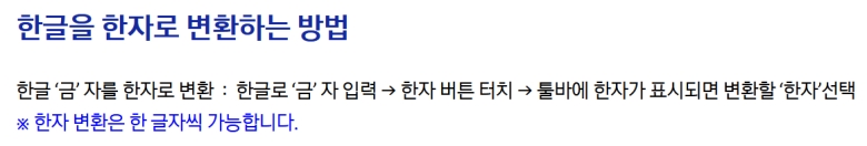 마음에 드는 한자를 선택하고 나면 어떤 변화가 생겼는지 확인해 보세요. 아까 글자를 입력하던 공간에 있던 한글 '금'이 방금 선택한 한자로 깔끔하게 바뀐 것을 볼 수 있을 거예요. 이렇게 하면 변환이 완료된 거랍니다. 중요한 점은, 한자 변환은 한 글자씩만 가능하기 때문에 여러 글자를 바꿔야 한다면 이 과정을 반복해야 한다는 거예요.